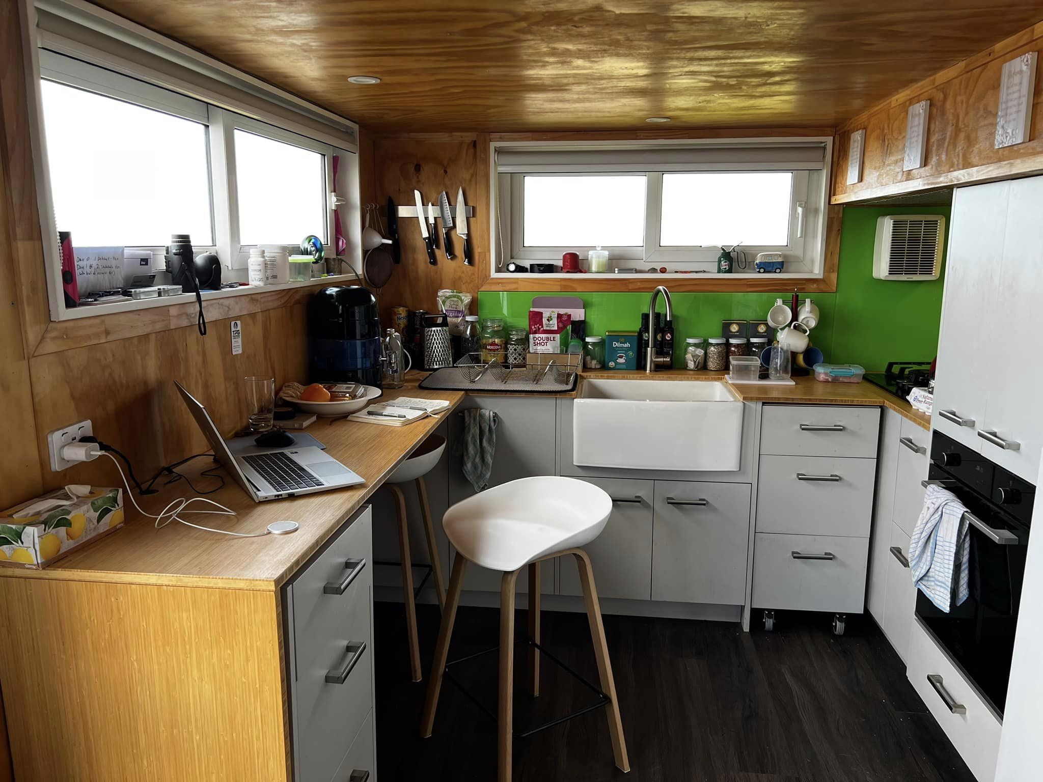 I built “Yana” (My Tiny Home) two years ago with my cousin Ryan Reti and son James Cutting. Ryan is an expert with iron, roofing etc which was extremely helpful, he designed the cool flashings (Around doors and windows) and made sure we were completely watertight. The rest of the build we learnt as we went, made quite a few mistakes but they ended up easy to fix. What helped was the valuable information from the suppliers of materials who provided valuable tips and information along the way.