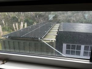 - 12-unit battery bank charged by Victron Energy inverter/system for power which is generated via nine exceptionally large solar panels (three situated in middle of tiny house rooftop and six others on Container rooftop. – The Container is used for storing my building tools, gardening tools etc
